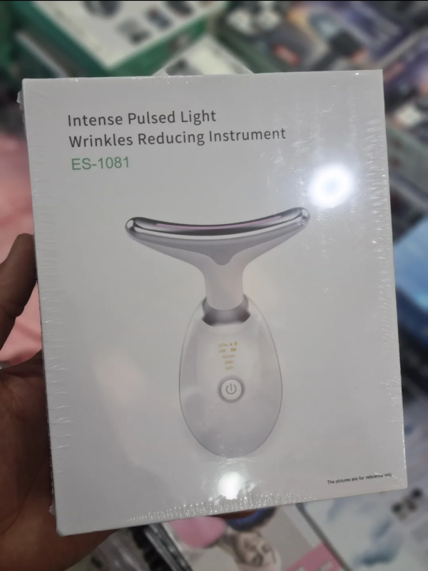 الوصف: جهاز مبتكر متعدد الوظائف مصمم خصيصًا لتحفيز الكولاجين، شد البشرة، وتخفيف التجاعيد، خاصة في منطقة الرقبة. يتميز الجهاز بتقنية الضوء النبضي المكثف (IPL) وحرارة مغناطيسية تصل إلى 45 درجة مئوية، مما يساهم في تعزيز الدورة الدموية وشد الجلد.