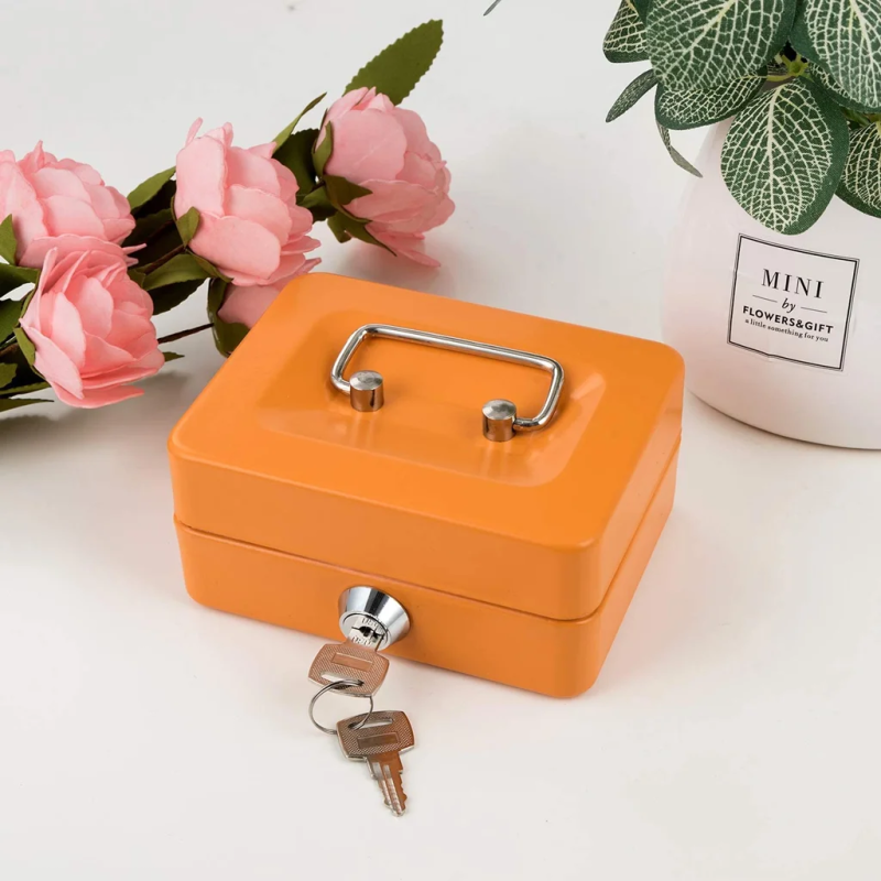 تأتي مع قفل بمفتاح لتأمين أموالك وسجلاتك داخل العلبة.