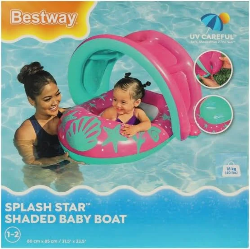 Bestway 34091 Bouée Bébé avec Pare-Soleil anti UV 80 x 85 cm pour Piscine et plage Nouveau