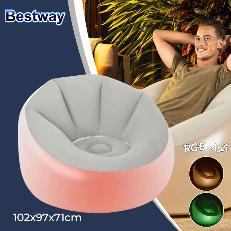 كرسي هوائي قابل للنفخ 102 × 97 × 71 سم مع إضاءة LED مدمجة بـ 7 ألوان مختلفة – Bestway 75086
