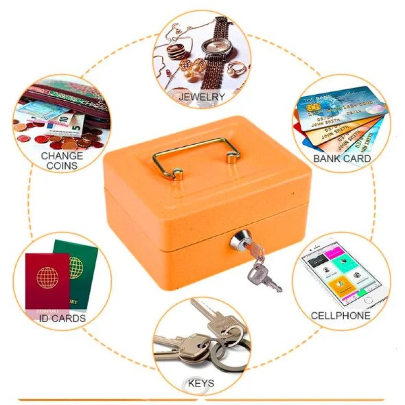 تأتي مع قفل بمفتاح لتأمين أموالك وسجلاتك داخل العلبة.