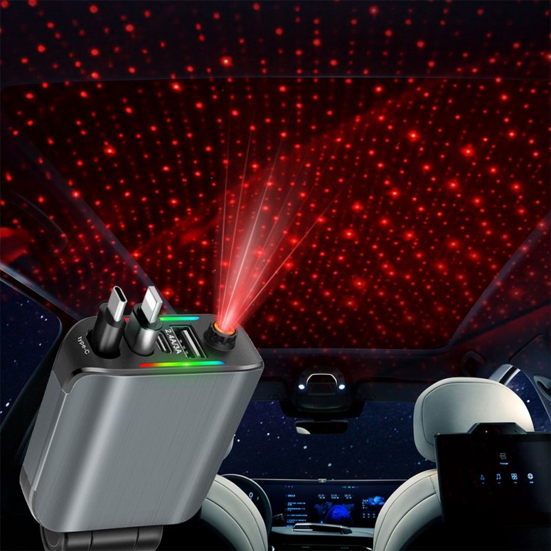 Chargeur Voiture 4en1 Rétractable 120W avec toit Starlight pour téléphones iOS et Android- شاحن سيارة متعدد المنافذ12800 DA