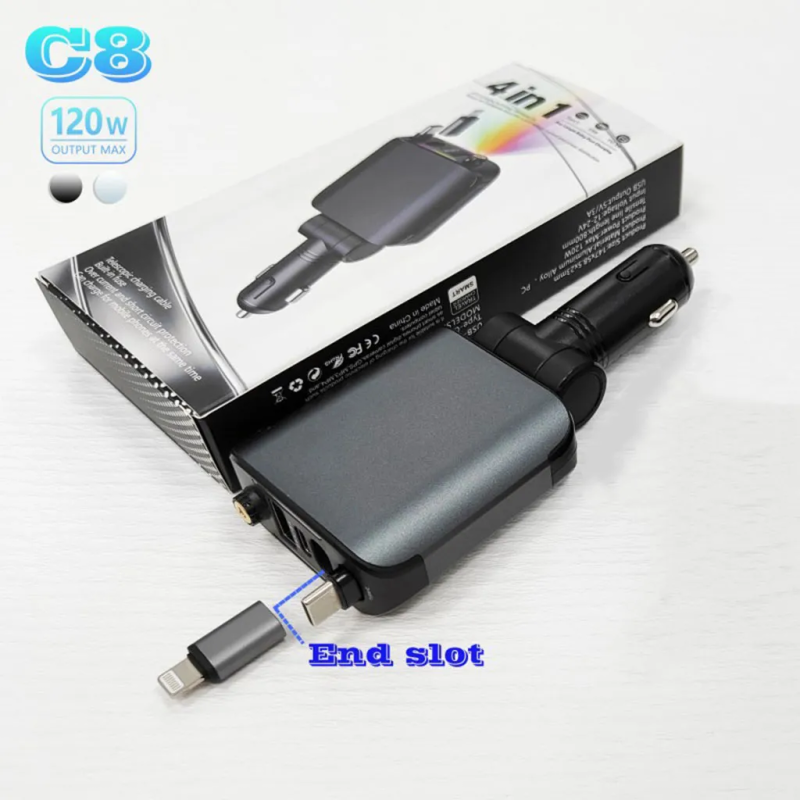 Chargeur Voiture 4en1 Rétractable 120W avec toit Starlight pour téléphones iOS et Android- شاحن سيارة متعدد المنافذ Nouveau