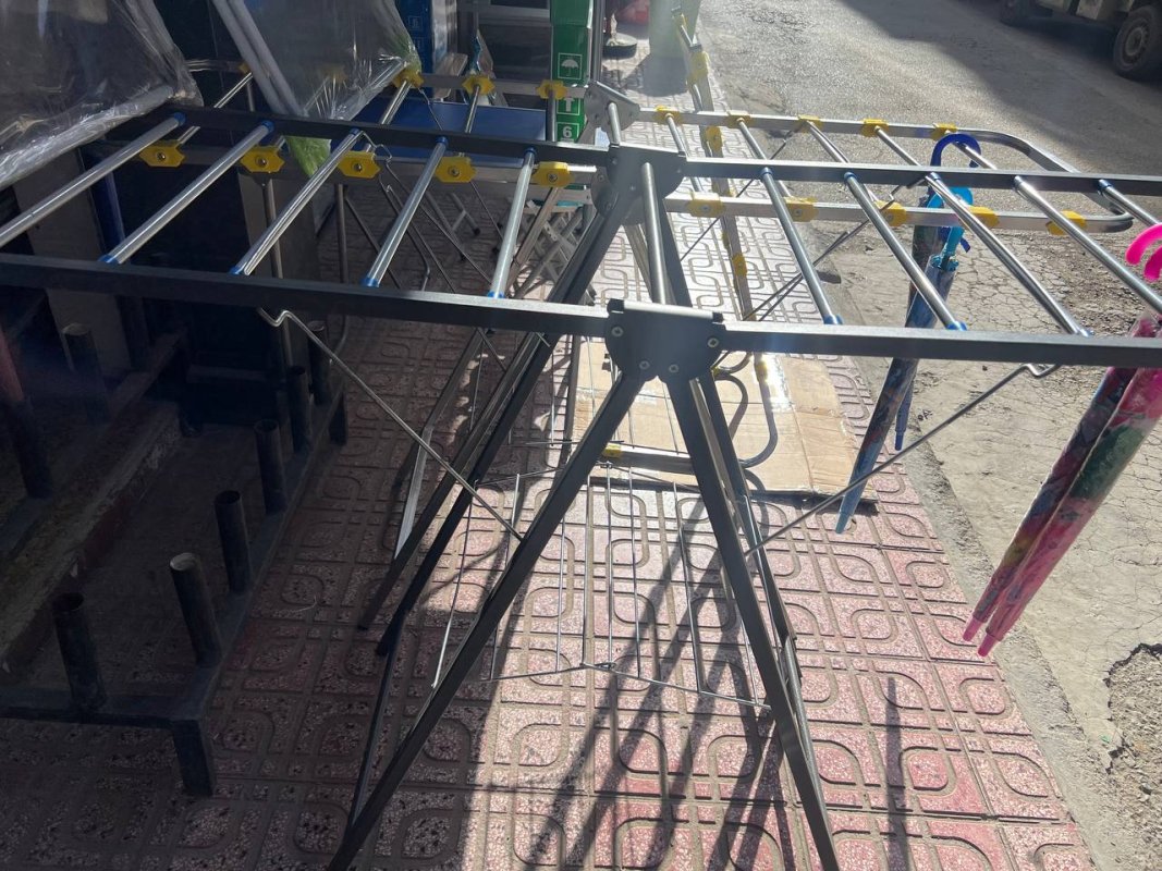 مجفف ملابس كبير وقابل للطي، مصنوع من معدن عالي الجودة، مصمم لتجفيف كمية كبيرة من الملابس بكل سهولة. يحتوي على 13 صفًا لتوزيع الملابس بشكل منظم وتسريع عملية التجفيف. يتميز بهيكل معدني متين يتحمل الوزن والاستعمال اليومي، مع إمكانية طيه وتخزينه بسهولة عند عدم الاستخدام. مثالي للمنازل، الشقق، والاستعمال اليومي خاصة في فصل الشتاء.