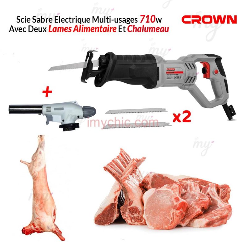 Scie Sabre Électrique Multi-usages 710w Avec Deux Lames Alimentaire Et Chalumeau Crown