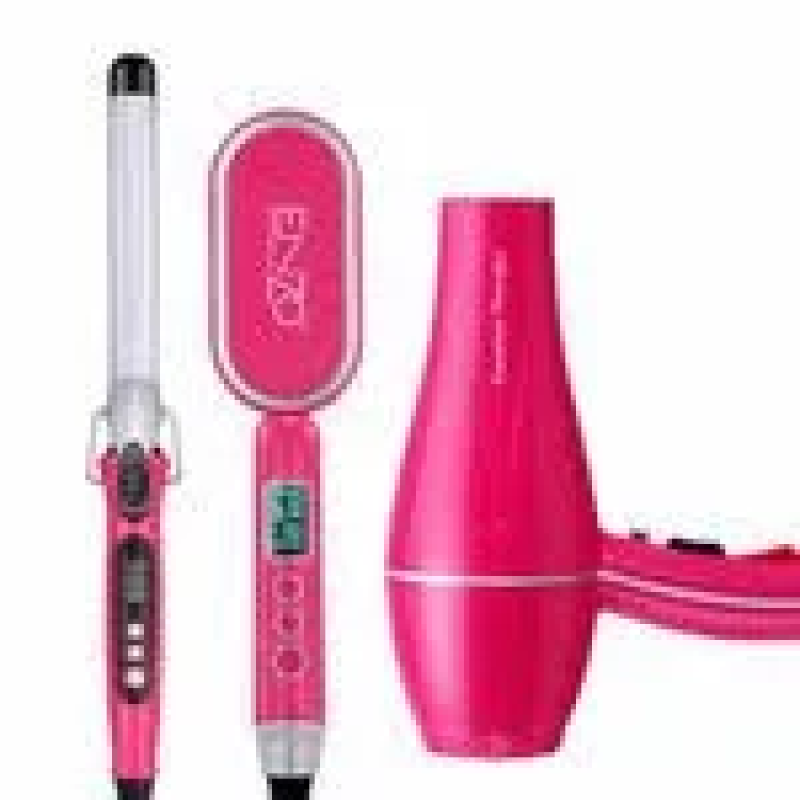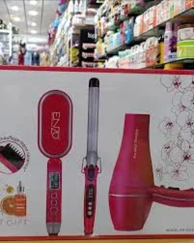 الوصف: هذه الحزمة الكاملة مثالية لتحقيق تسريحة شعر مثالية مع العناية بشعرك. تحتوي على مجفف شعر قوي، وفرشاة فرد الشعر، ومكواة تجعيد الشعر، وزيت الشعر من دكتور إنزو لتغذية شعرك وحمايته.