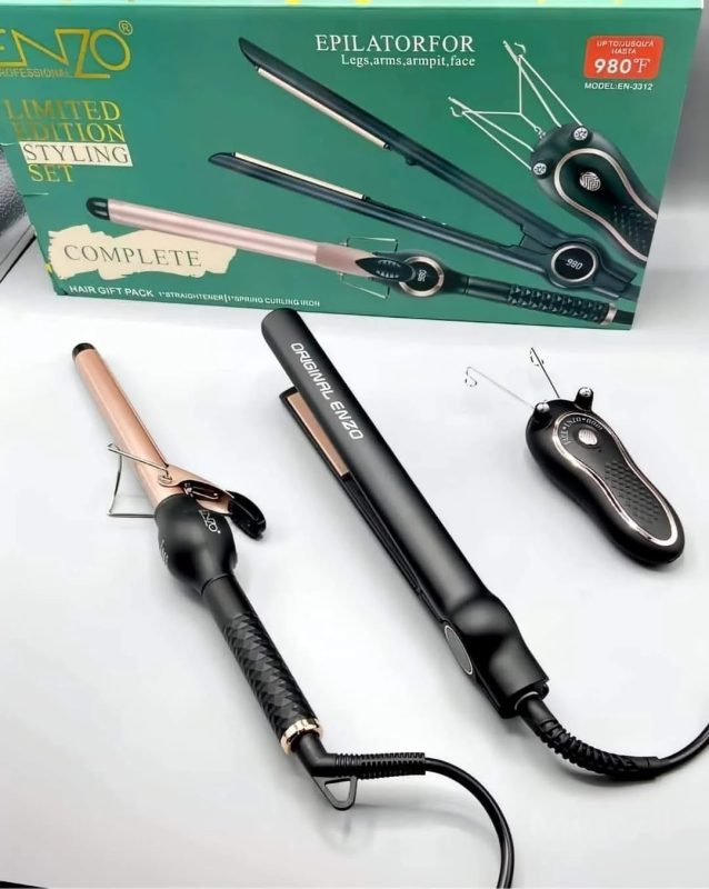 Pack Enzo En-3312 3en1 (Lisseur +Boucleur +Epilateur fil16500 DA