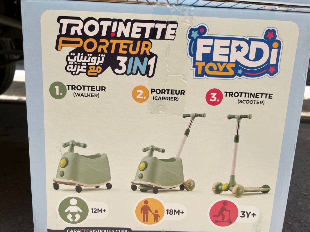 Trottinette 3 en 1 pour Enfants – Porteur + Trotteur + Scooter | Sécurisée & Évolutive17000 DA