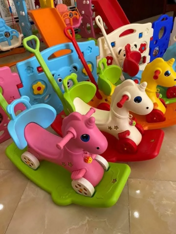لعبة هزّازة: بمجرد تركيبها على القاعدة العريضة، تتحول إلى حصان هزّاز آمن ومريح ينمّي التوازن والمهارات الحركية لدى الطفل.